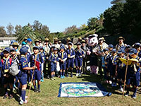 秋らしい絶好の運動会日和になりました。稲川公園でビーバー、カブ合同でスカウト、リーダー、保護者OB、70名が集まってミニ運動会を実施しました。大阪弁のラジオ体操に始まって、紅白に分かれての各種の熱戦を繰り広げ、150対95で紅組チームの優勝。光り輝ける真紅の優勝旗が主将に手渡されました。終了後、大物公園に帰り豚汁で昼食、これも完食。ここからは本来の隊集会。ビーバーは出来なかったゲームをパパママと一緒に行い楽しみました。おやつは前回拾った椎の実の煎ったのと柿、まさに秋の恵みを味わいました。(K3)